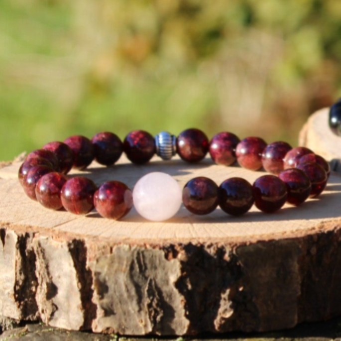 Il symbolise l'énergie et va contribuer à stimuler et dynamiser l'énergie vitale déficiente ou en baisse. Eveille à la conscience et favorise l'ancrage dans le moment présent. Il accroît la confiance en soi, combat le découragement et la fatigue. Ce minéral intervient également dans l'amélioration de l'assimilation de l'hémoglobine et régularise la circulation sanguine. Il est vivement recommandé dans le traitement en cas d'anémie. Le grenat apporte l'énergie et la vitalité nécessaire pour donner du courage à celui qui le porte, c'est la pierre idéale pour commencer un projet et le réussir.