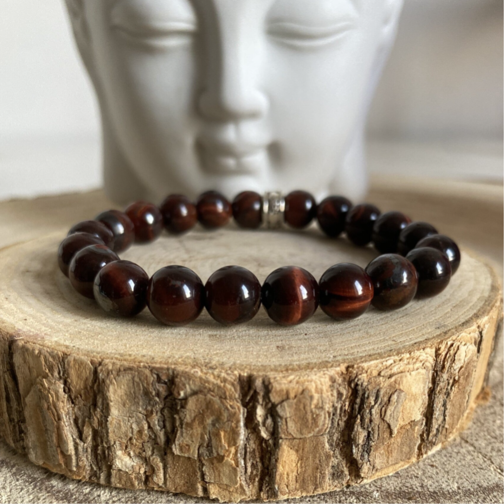 Ce beau bracelet de PROTECTION en pierres naturelles de 8 mm, est monté sur un fil élastique transparent très résistant. Perle intercalaire en métal.