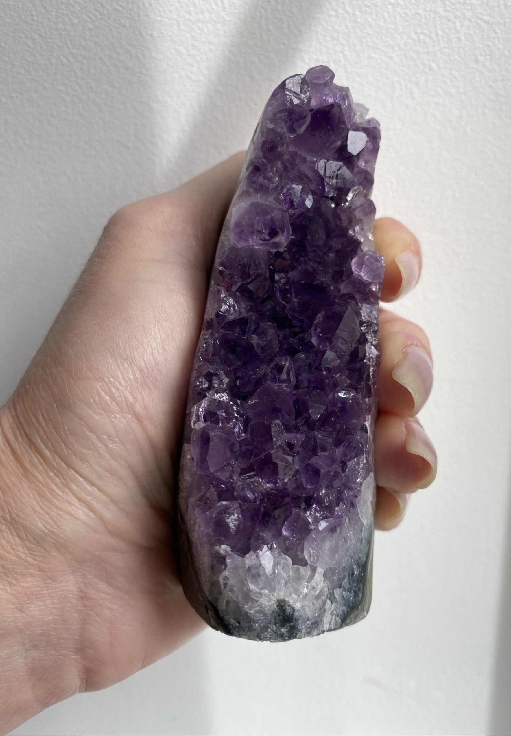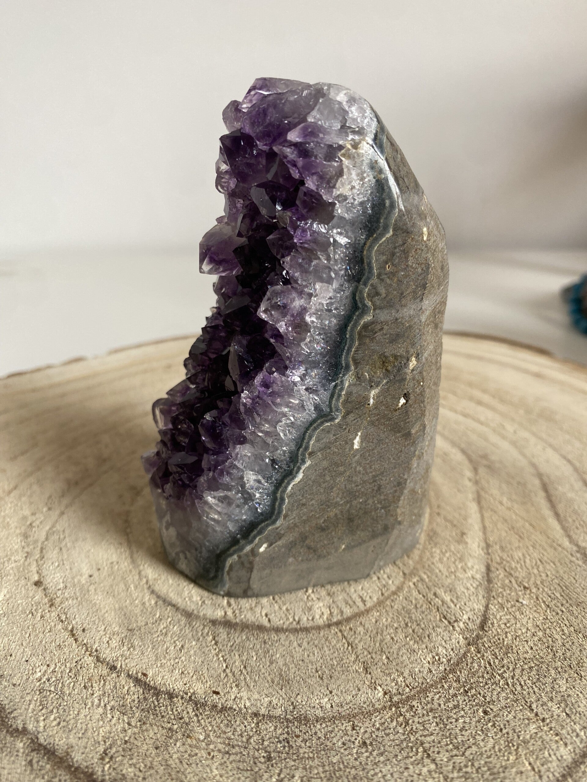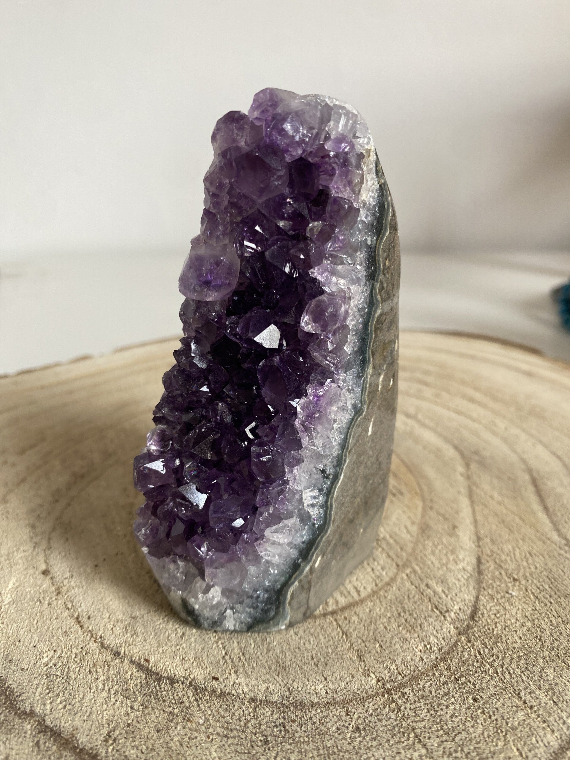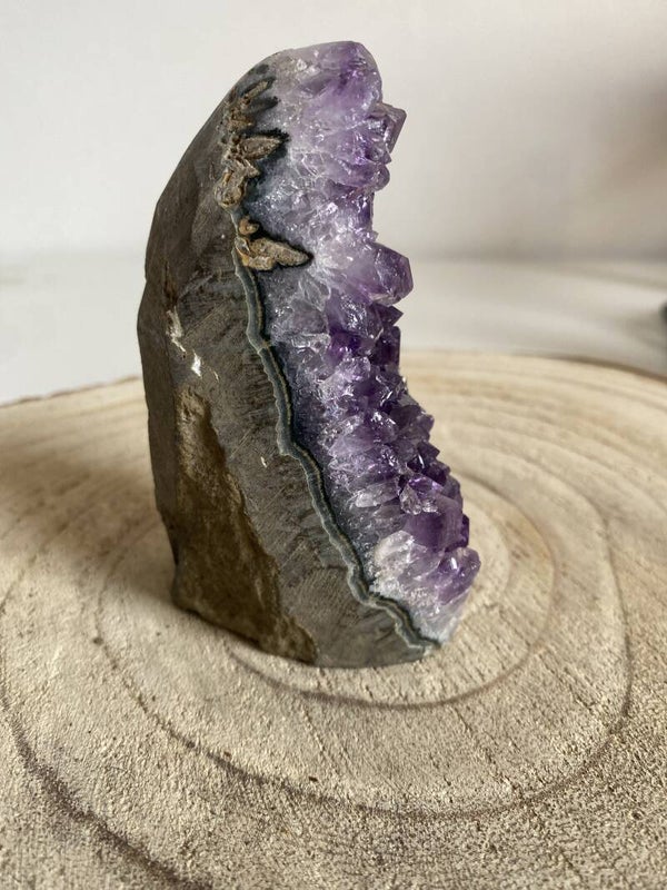 Une druse améthyste est un fragment de pierre tapissé de cristaux d’améthyste.